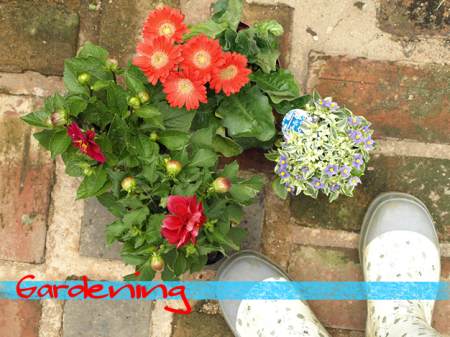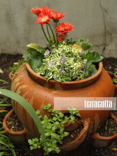 テラコッタの鉢植えにはガーベラを植えました。