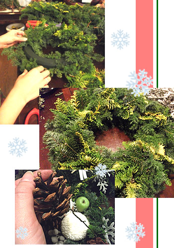 そして松ぼっくりもリンゴもワイヤーで下準備をし