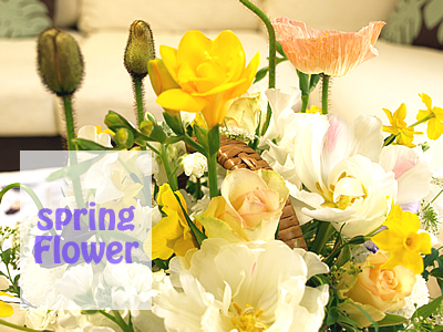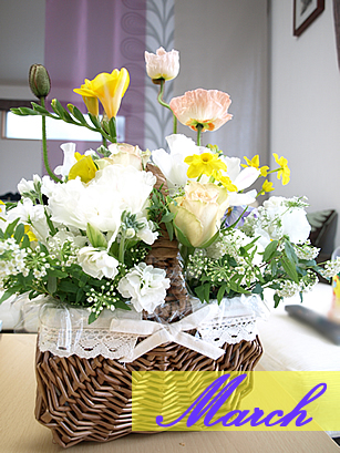 スイトピー、ストック、スイセン、コデマリ等を使っています。