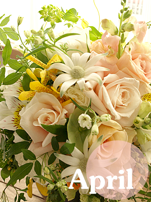 葉や蕾がピョンピョン顔をだした、春らしいブーケ♪