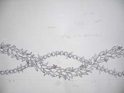 これは裾柄のデッサン。ジンジャーとピカケのレイです♪